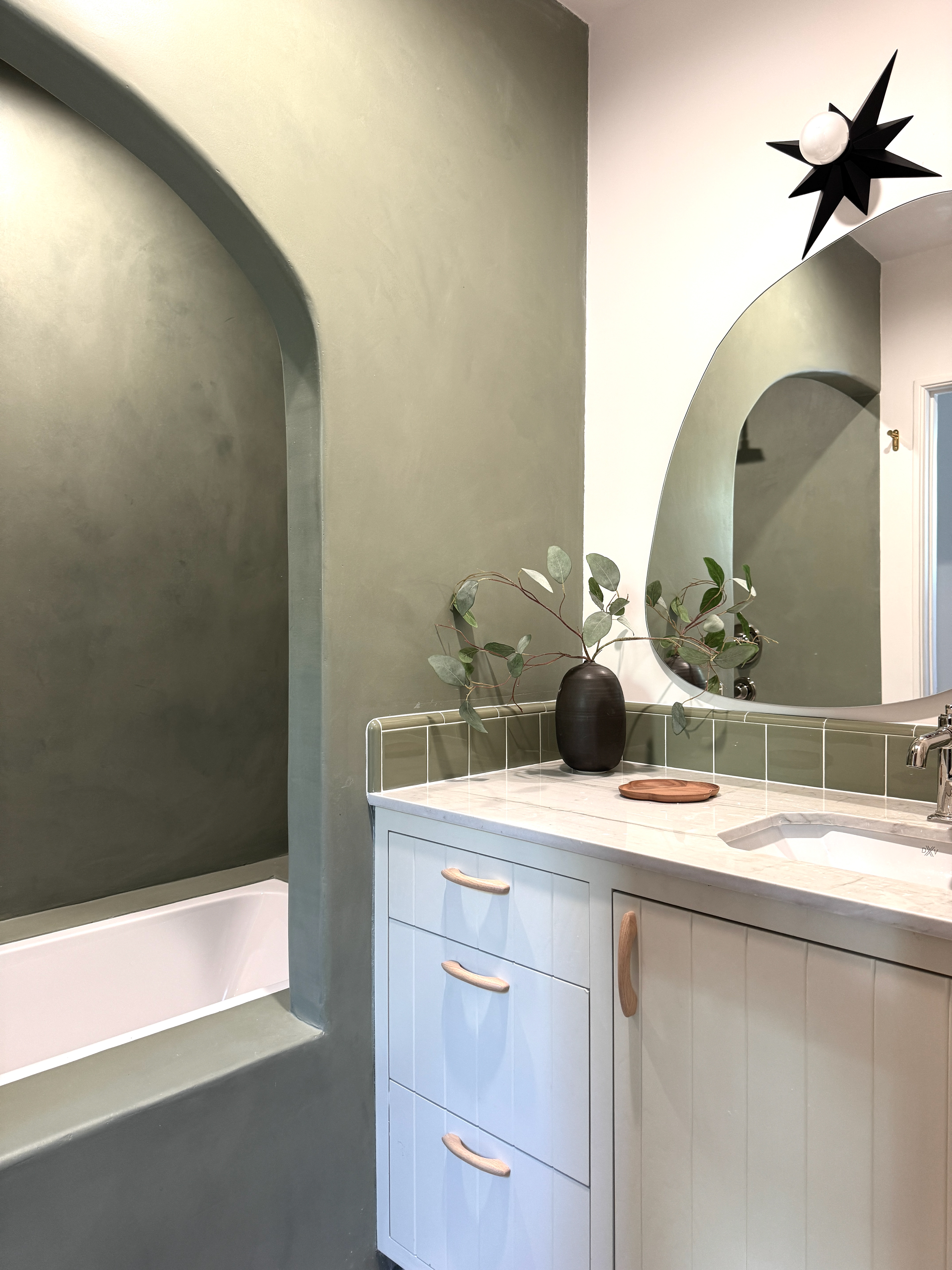 Updating this 1930's Spanish-style home introduced a new layout while keeping the charm and motifs of the original interior. Archways, curved corners, and brass features characterize the new and old portions of this century-old house.